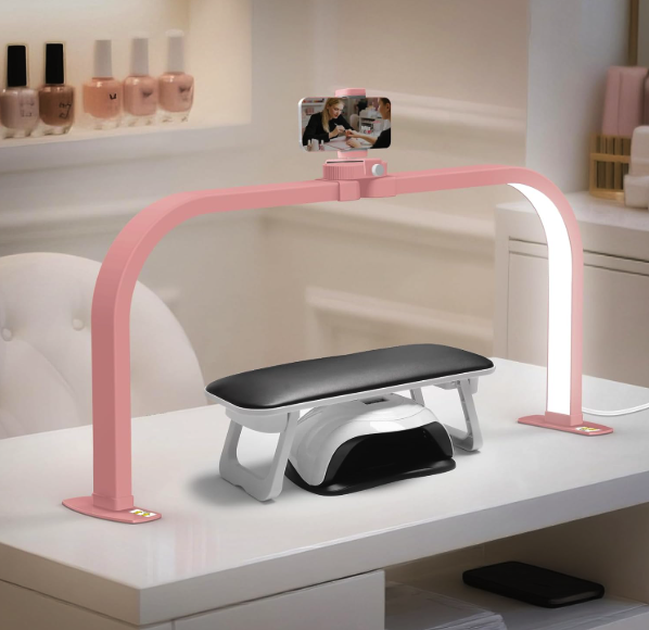 Halbmond Lampe für Nägel Faltbar, dimmbar mit Handyhalter 3 Farbmodi 10 Helligkeiten Rosa Neupreis 77 Euro https://amzn.eu/d/bC5bJfP