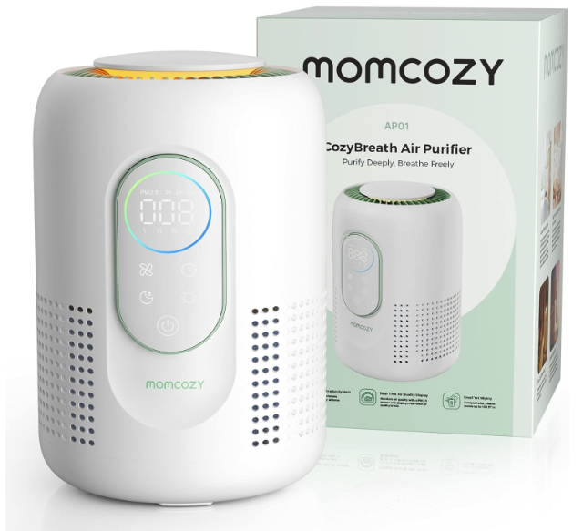 Luftreiniger für das Kinderzimmer von Momcozy 4-Filtersystem mit H13 HEPA- und Aktivkohlefilter Echtzeit-PM2,5-Luftqualitätsüberwachung und -Anzeige mit 3-farbigem Status 21-dB-Schlafmodus NP 130.00 Euro https://amzn.eu/d/bAcRiDG